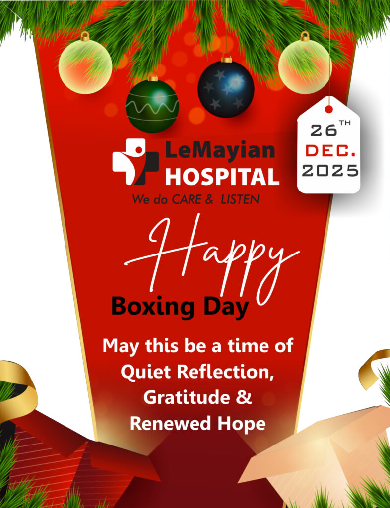 MERRY CHRISTMAS !!December 24, 2025HAPPY NEW YEAR !!January 1, 2026 Published by Lynn Mokua on December 26, 2025 Categories Uncategorized Tags Share0 Lynn Mokua Related postsFebruary 14, 2026HAPPY VALENTINES FROM LEMAYIAN HOSPITAL.Read moreJanuary 1, 2026HAPPY NEW YEAR !!Read moreDecember 24, 2025MERRY CHRISTMAS !!Read more Leave a Reply Cancel replyYour email address will not be published. Required fields are marked *Comment * Name * Email * Website Save my name, email, and website in this browser for the next time I comment.